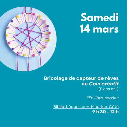 Le Coin créatif met à la disposition des enfants une foule de matériel de bricolage et d'art, en avant-midi chaque 2e samedi du mois.